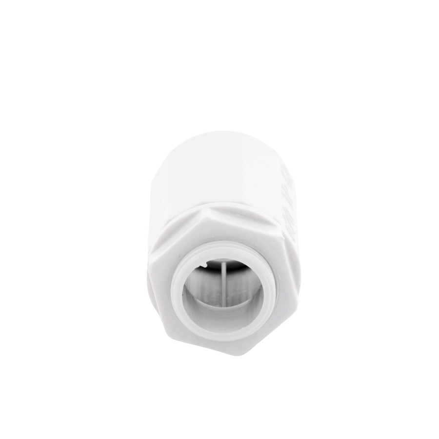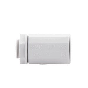Conector (Racor) GEWISS DX-43-220 de PVC autoextinguible y libre de halógenos para unir tubería rígida de 20 mm a cajas. Ofrece un alto grado de protección IP65/IP67, ideal para asegurar las canalizaciones en instalaciones tanto interiores como exteriores.